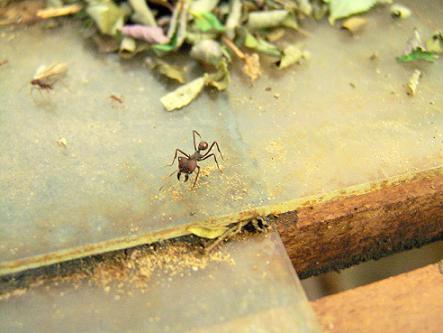 construtor e mantenedor do formigueiro, vinha notando uma queda na população de formigas e não mais registrou a presença de formas jovens. A rainha já não gerava mais novos indivíduos. Ela foi encontrada morta, sem a cabeça e as pernas, na área em que as formigas depositavam o lixo e seus mortos.