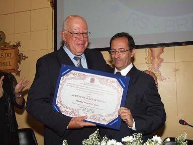 Em solenidade realizada na última sexta-feira(4), o reitor Cesar Borges entregou ao ex-ministro da Educação, Murílio de Avellar Hingel, o título de Doutor Honoris Causa da UFPel. A distinção havia sido concedida em 1994 pelos Conselhos Superiores da instituição.