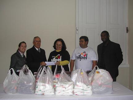 O Laboratório de Eventos da Faculdade de Administração e Turismo fez a entrega na tarde desta quinta-feira(28) dos alimentos recebidos no jantar em comemoração aos 39 anos da UFPel. Foram arrecadados 35 quilos de açúcar; 18 de arroz; 9 de farinha; 7 de feijão; 5,5 de massa; 1/2 quilo de ervilha; 1 litro de leite; l lata de 200 gramas de milho e 900 ml de óleo. Os alimentos foram doados ao Instituto Nossa Senhora da Conceição, que atende 68 meninas, de 6 a 12 anos de idade, localizado à rua Barão de Butuí, 352.