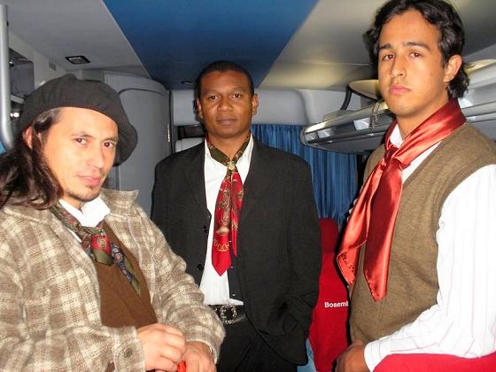 Convidados pelo Instituto Simões Lopes Neto – organizador da atividade –, os alunos Luciano Dutra Almeida, Eric Silveira Barreto e o pesquisador nativista André Macário acompanharam as gravações do filme baseado no conto “Nos cabelos da china”, que está sendo rodado, com direção de Henrique Freitas Lima.
