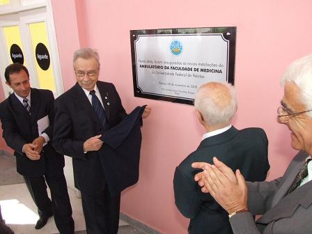Descerraram a placa de inauguração das novas instalações do ambulatório o reitor da UFPel, Cesar Borges, o diretor da Faculdade de Medicina e os professores Naum Keiserman e Mário Coutinho. Em sua fala, Nader agradeceu o apoio da administração central da Universidade na consecução da obra. “Foi um somatório de esforços ao longo dos anos. Este é um dos maiores empreendimentos da Faculdade”, observou.