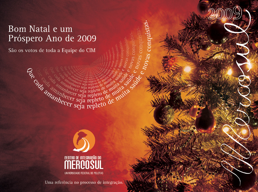 O Centro de Integração do Mercosul(CIM) da UFPel, órgão de referência em integração, está divulgando sua mensagem de fim de ano. O CIM completou em 2008 13 anos de trabalho.