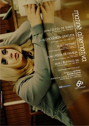 Esta edição de junho da Matinê Alternativa é a primeira etapa de um projeto que pretende ter continuidade, contribuindo para a formação de público cinematográfico. Haverá outra semana de projeção de filmes alternativos em julho. Os selecionados da próxima edição serão anunciados na sexta-feira, dia 26 de junho. O auditório do IAD fica na rua Alberto Rosa, 62. Para outras informações, acesse o blog do evento, no endereço matinealternativa.blogspot.com. ![]()