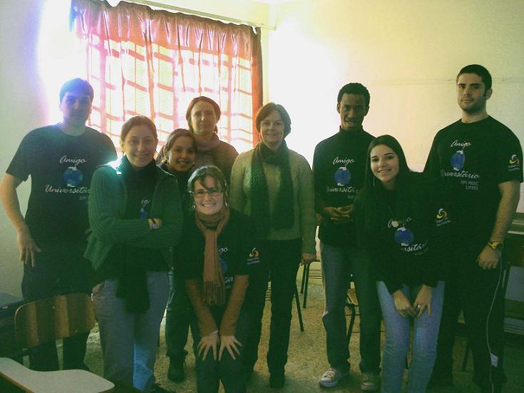 dsc003711.JPG O projeto Amigo vai à Escola, do Departamento de Intercâmbio e Programas Internacionais(Dipi), juntamente com a Pró-Reitoria de Extensão e Cultura – PREC, realizou visita à escola Dr. Augusto Simões Lopes no dia 19 de junho. O grupo da UFPel foi recepcionado pelas professoras Dóris Maria Rosa Cunha e Amélia Zanatto. Na oportunidade, foram apresentados os cursos de graduação da UFPel aos alunos da escola. Através do projeto, participaram da ação os alunos André Luis de Quevedo (Enfermagem), Francine Barenho (Direito), Maicon Barboza (Eng. Madeireira), Margie Porto (Artes Visuais), Martioli (Letras Francês), Paula Tavares (Administração), Ramon de Leon (Ed. Física) e Thiane Gomez de la Fuente (Turismo). O Projeto O Amigo Vai a Escola está aberto a convites para esta atividade.