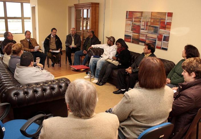 Lideranças da região da Várzea, adjacente ao novo campus Porto, foram recebidas pelo reitor Cesar Borges na manhã de sexta-feira(17), em seu gabinete na Reitoria. O encontro serviu para aprofundar ações e metas do programa Vizinhança, coordenado pela Pró-Reitoria de Extensão e Cultura junto às comunidades do entorno do novo campus da UFPel.