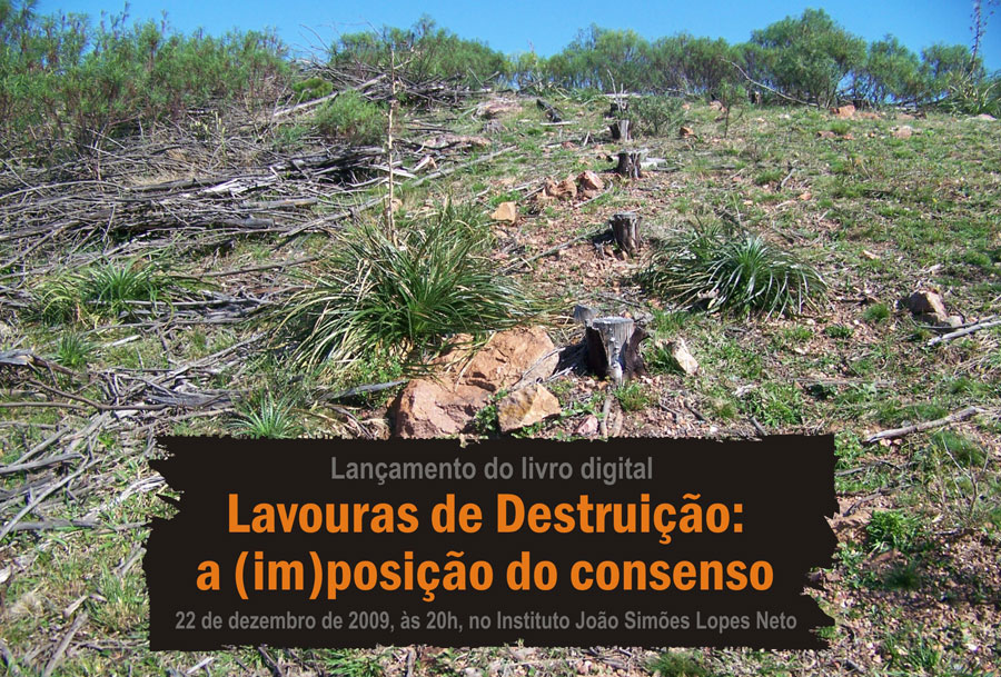 convite-lancamento.jpg Nesta terça-feira(22), às 20h, os professores Althen Teixeira Filho, do Instituto de Biologia,  e Pedro Moacyr Pérez da Silveira, da Faculdade de Direito da UFPel, estarão lançando o livro digital intitulado “Lavouras de destruição: A (im)posição do consenso”, no Instituto João Simões Lopes Neto. A obra traz textos de autores da Argentina, Uruguai, Brasil, Alemanha e Áustria, abordando temas que vão desde a transgenia, passando por  monocultivos, indo alcançar bioética, aspectos legais, políticos, entre outros, distribuídos em 18 capítulos e perfazendo mais de 700 páginas. A impressão do trabalho é em DVD e conta também com acesso gratuito na internet.