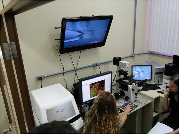 O laboratório de Embriologia Molecular e Transgênese, coordenado pelo professor Tiago Collares, recebeu a visita de representantes do grupo Olympus, para demonstração do FV10i, primeiro microscópio confocal de varredura a laser autônomo do mundo, fabricado pela empresa japonesa. O lançamento internacional do equipamento foi simultâneo e, no Brasil, a UFPel foi uma das primeiras instituições a receber o workshop para avaliar a tecnologia.