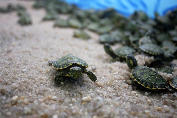 Os animais, provenientes de uma grande operação da Brigada Militar, que apreendeu mais de 30 mil ovos da espécie, foram retirados dos ninhos naturais e colocados em “canteiros” artificiais nas residências dos indivíduos envolvidos no ato criminoso até que se desenvolvessem.