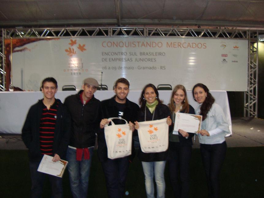 A Emad Jr. (Empresa Júnior) do curso de Administração da Universidade Federal de Pelotas participou nos dias 6,7,8 e 9 de maio do XVIII Encontro Sul – Brasileiro de Empresas Juniores, Esej. O evento reuniu empresários juniores do Rio Grande do Sul, Santa Catarina e Paraná e de outros estados do país. O tema central “Conquistando Mercados” foi discutido pelos empresários juniores através de suas conquistas no mercado e como isto se reflete na sociedade brasileira, abordando-se o Marketing não apenas como uma função empresarial, mas também como parte de um sistema econômico e social.