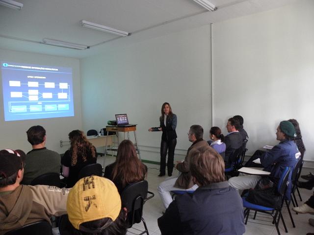 p7290263.JPG Em visita à UFPel, a gerente de Hidrologia e Gestão Territorial da Superintendência Regional de Porto Alegre do Serviço Geológico do Brasil – SGB/CPRM , engenheira civil e hidróloga  Andréa de Oliveira Germano, proferiu palestra no “Curso de Capacitação e Difusão de Conhecimentos e Práticas em Recursos Hídricos”, promovido pelo grupo de “Hidrometria” da Engenharia Hídrica da UFPel. Nesse encontro, a engenheira teve a oportunidade de explicitar as atividades da CPRM na região e suas responsabilidades com relação a parceria que mantém com a Agência Nacional de Águas naoperação da Rede Hidrometeorológica Nacional.