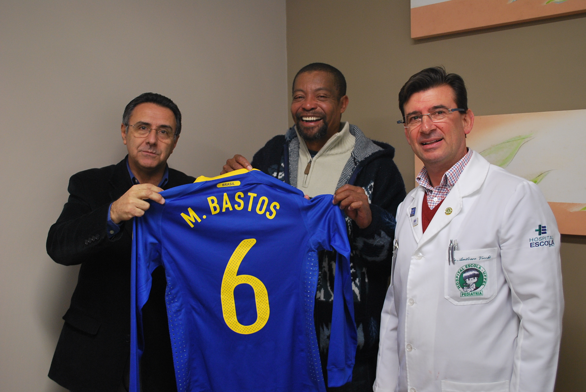 O Hospital Escola UFPel/FAU recebeu nesta sexta-feira (30) pela manhã, a visita do pai do jogador de futebol Michel Bastos. A família do atleta doou para o hospital uma camiseta oficial da seleção brasileira, usada na Copa da África e autografada pelo jogador.