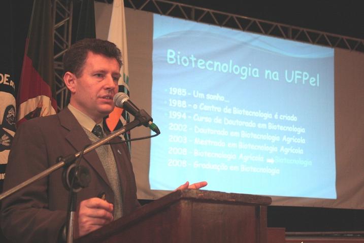 Na sequência o professor Odir Dellagostin ministrou uma breve palestra sobre a trajetória da Biotecnologia que começou em 1985 como um sonho, disponibilizou dados sobre a situação atual e traçou as metas para o futuro. Entre os tópicos, outro motivo para comemoração, de acordo com o professor, a Coordenação de Aperfeiçoamento de Pessoal de Nível Superior (CAPES) divulgou nesta terça-feira (14) o resultado da avaliação 2010 (triênio(2007/2009) dos programas e cursos que integram o Sistema Nacional de Pós-graduação (SNPG) e a Biotecnologia da UFPel manteve o conceito 5, alcançado apenas por oito Universidades em todo o País.