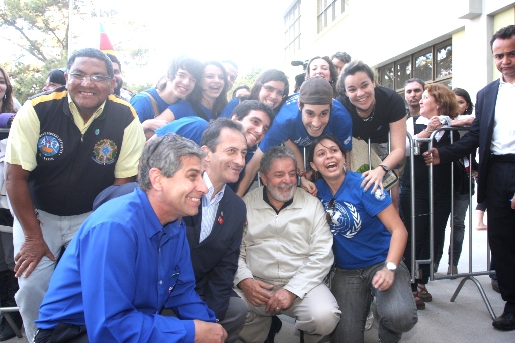 Mas o momento maior do presidente na cerimônia ficaria reservado para o fim de sua passagem pelo campus da UFPel. Por mais de 30 minutos, cumprimentou populares, tirou fotos, distribuiu autógrafos e abraços e trocou rápidas palavras com quem desejasse falar com ele, tudo junto à grade que separava o público do palanque oficial.
