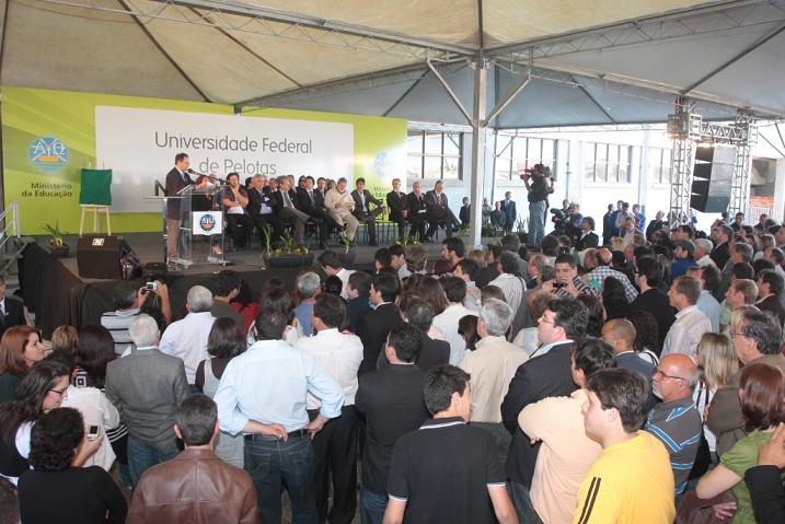 O reitor da UFPel, Cesar Borges, em sua fala, disse que era uma honra para Pelotas e para todos os municípios da Zona Sul receber o Presidente da República e o Ministro da Educação. Recordou que, em 2005, a necessidade de formar mais profissionais e o aumento no número de vagas na universidade motivaram a busca por mais espaços físicos, daí surgindo a ideia de ocupar as antigas instalações do frigorífico Anglo, fechado desde a década de 80.