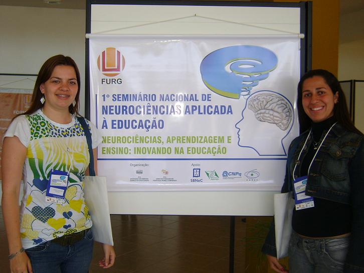 Duas licenciandas do curso de Ciências Biológicas, Cristiane Gobbi e Juliana Sassi, que fazem parte do PIBID/UFPel, nessa semana apresentaram pôsteres no 1º Seminário Nacional de Neurociência Aplicada à Educação, com o tema “Neurociência, aprendizagem e ensino: inovando na educação”.