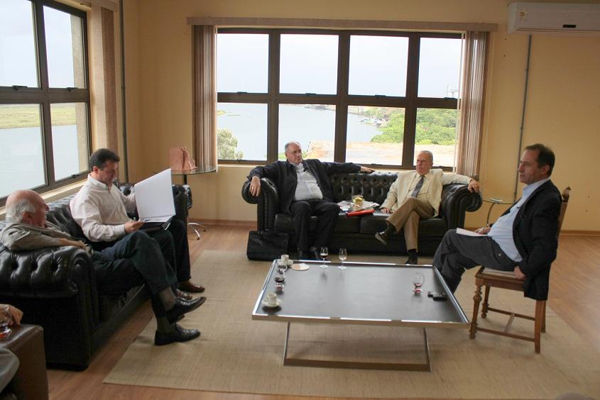 sentados.JPG Dom Jacinto Bergmann disse também de sua admiração pelas novas instalações da UFPel no campus Porto. A propósito de obras, também foi destacado que coube ao primeiro reitor da UFPel, Delfim Mendes Silveira, presidir o Crub e construir a primeira sede do Conselho de Reitores, em Brasília, no ano de 1975. Agora, 35 anos depois, cabe ao reitor da UCPel, atual presidente do Crub e com mandato prorrogado, construir o novo edifício-sede do órgão, com seis andares, na capital federal.