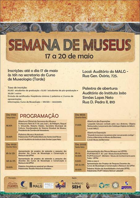 A coordenação dos cursos de Bacharelado em Museologia e o de Conservação e Restauro da UFPel promovem, de