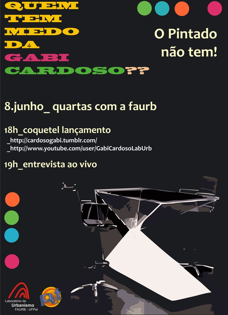 No evento será lançado “De frente com Gabi Cardoso” http://cardosogabi.tumblr.com/, que visa apresentar a produção do LabUrb de forma inusitada, utilizando do humor para divulgar pesquisa, ensino e extensão. Após terá a entrevista ao vivo com o professor Ricardo Pintado Luís Sampaio, coordenador do curso de Arquitetura e Urbanismo.