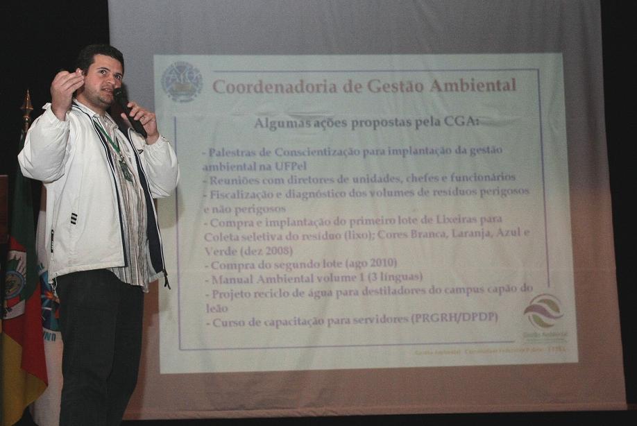 A Coordenadoria de Gestão Ambiental realizou uma programação especial na quarta-feira(8) para comemorar a Semana do Meio Ambiente. O local foi o auditório do Colégio Gonzaga. A programação esteve inserida na atividade Junho Ambiental, desenvolvida em Pelotas.
