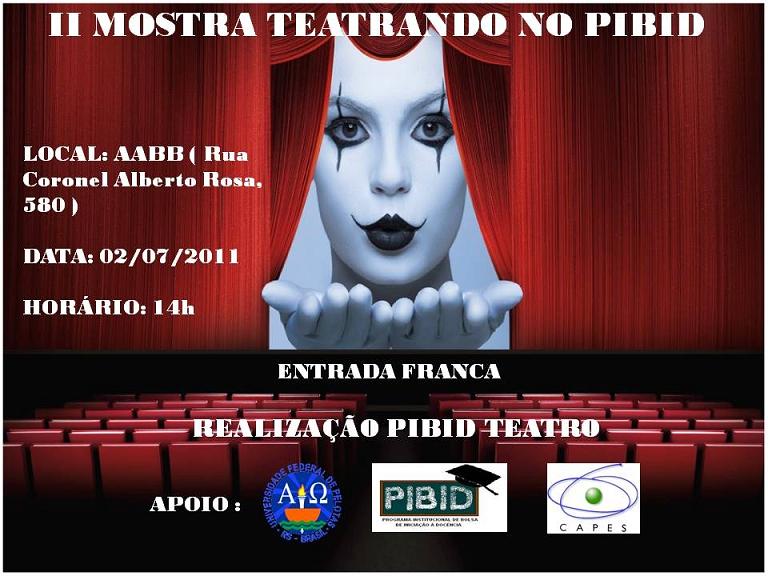 Acesse fotografias e informações sobre o PIBID Teatro em: http://pibidteatroufpel.blogspot.com/