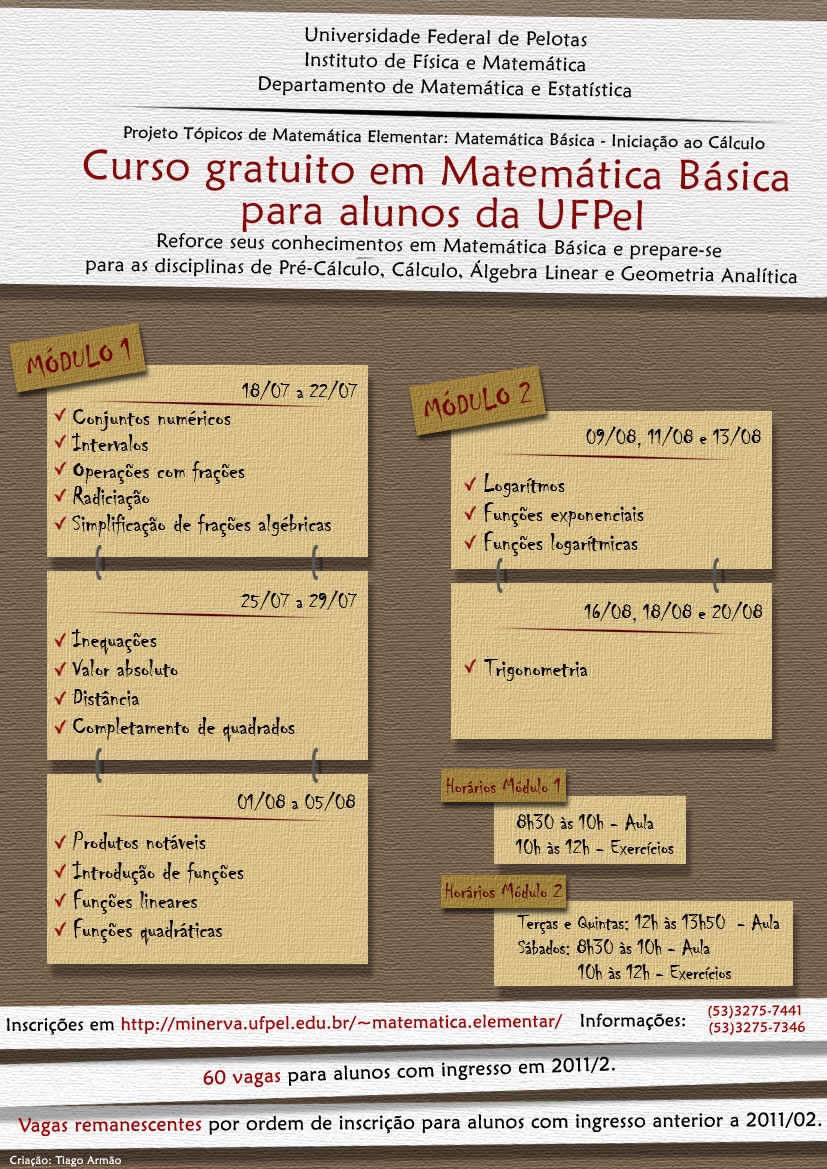 Curso gratuito em Matemática Básica para alunos da UFPel