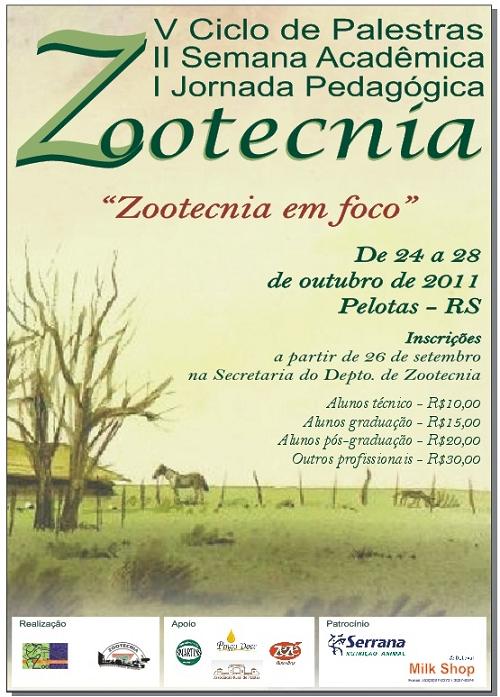 Entre os dias 24 a 28 de outubro, no Auditório da Faem – campus Capão do Leão – será realizado o 5º Ciclo de Palestras em Zootecnia, 2º Semana Acadêmica de Zootecnia e 1ª Jornada Pedagógica do Curso de Zootecnia. O tema deste ano é “Zootecnia em Foco”, onde diferentes profissionais da produção animal trarão sua experiência e contribuição na discussão em torno do conhecimento zootécnico.