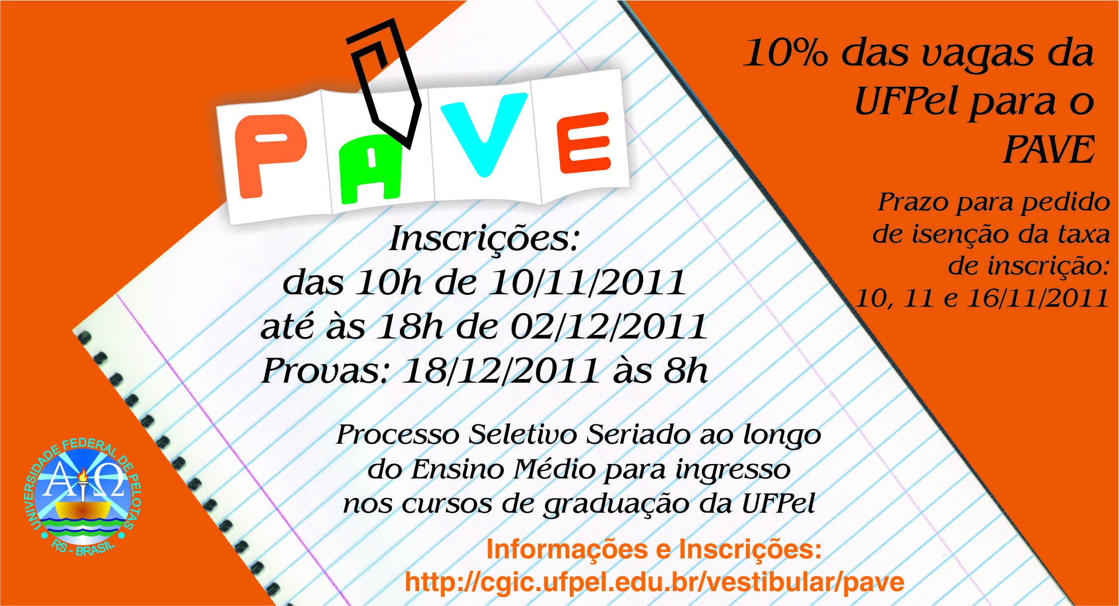 Inscrições abertas para o Pave Compartilhe: Clique para compartilhar no Facebook(abre em nova janela) Facebook Clique para compartilhar no X(abre em nova janela) 18+ Clique para enviar um link por e-mail para um amigo(abre em nova janela) E-mail Publicado em 10/11/2011