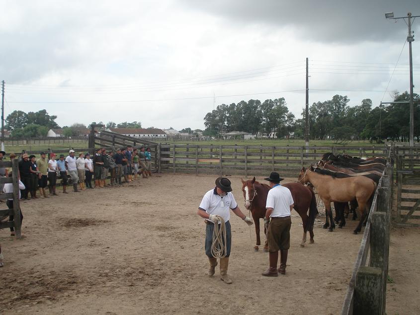 doma.JPG Está sendo realizado o XI Curso de Doma Racional e Linguagem Corporal, no parque da Associação Rural de Pelotas. Este curso é um projeto da UFPel, IFSul/CAVG, Associação Rural de Pelotas e Estância Ginkgo. Iniciou o dia 18 de novembro e está com 22 participantes de dez municípios do RS e um participante da Colômbia que foi convidado a participar através do intercâmbio entre a UFPel, IFSul e Universidade La Salle de Bogotá. O grupo é formado por estudantes, usuários urbanos do cavalo e profissionais que trabalham em propriedades rurais.