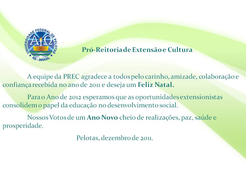 Mensagem de Natal da PREC Compartilhe: Clique para compartilhar no Facebook(abre em nova janela) Facebook Clique para compartilhar no X(abre em nova janela) 18+ Clique para enviar um link por e-mail para um amigo(abre em nova janela) E-mail Publicado em 19/12/2011