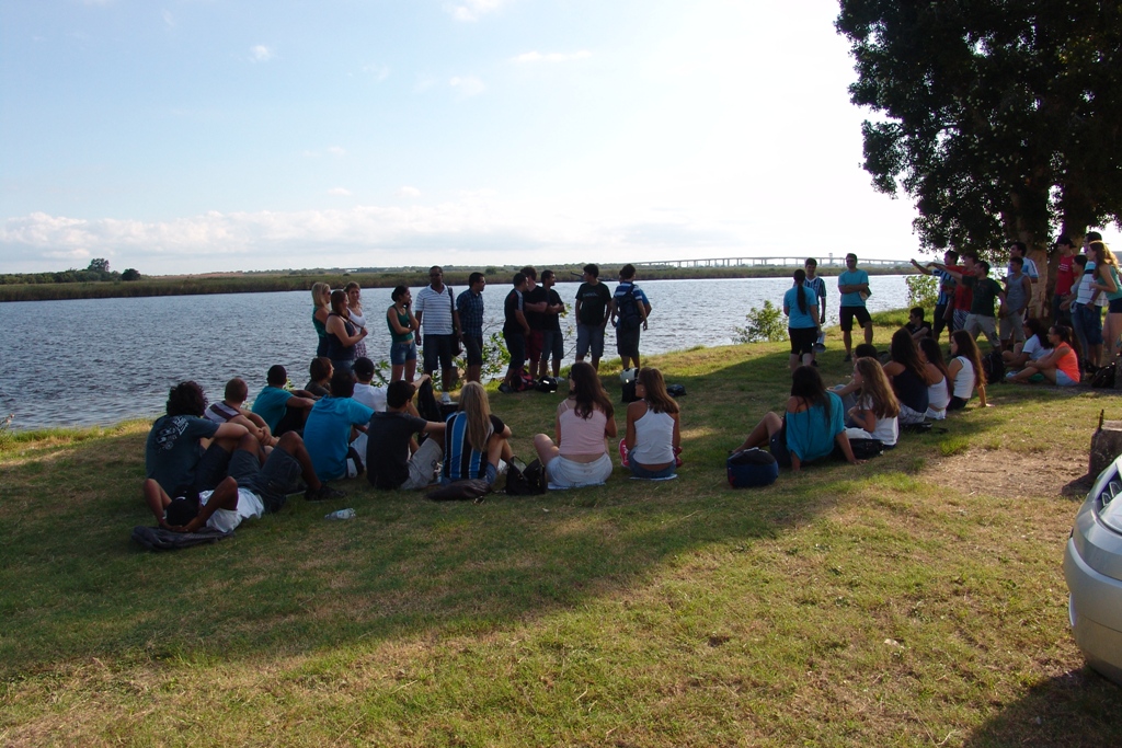 A turma de Administração escolheu uma sombra às margens do São Gonçalo para a recepção.