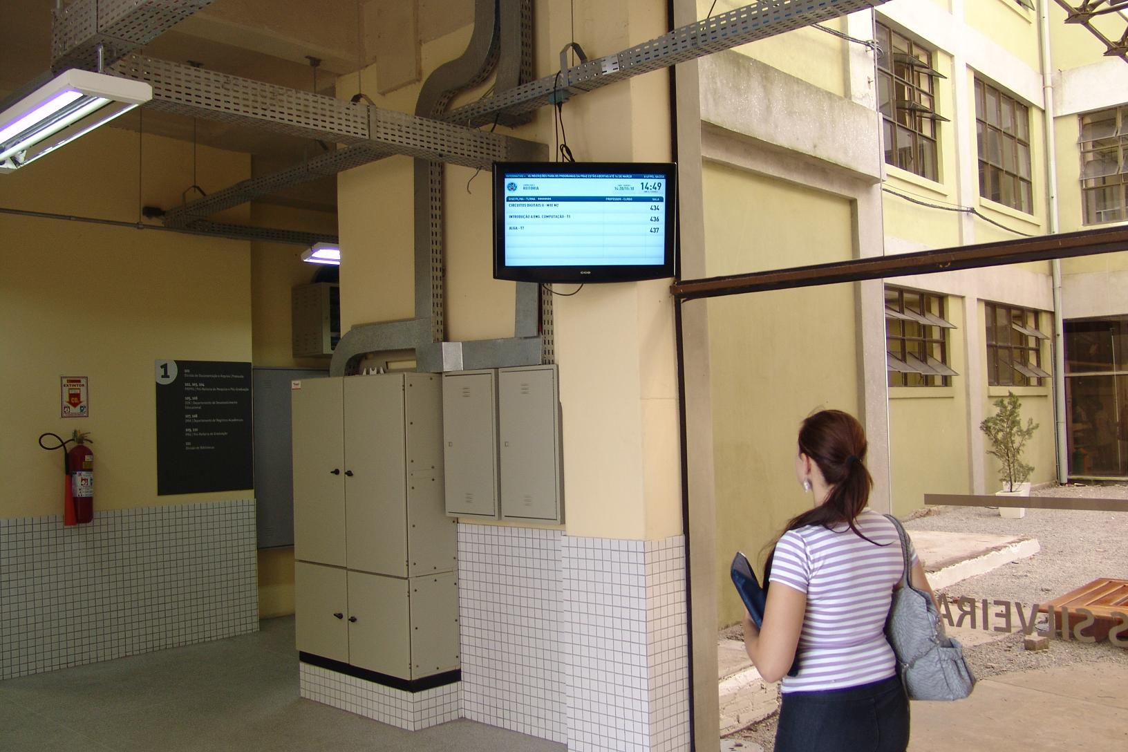 Alunos, professores e funcionários que transitam pelo Campus Porto já dispõem de painéis informativos distribuídos pelos andares do prédio. Os painéis fazem parte do Projeto de Gestão da Informação elaborado e desenvolvido pelo Departamento de Desenvolvimento Institucional (DDI), da Pró-Reitoria de Planejamento e Desenvolvimento da UFPel, em parceria com o CGIC e com o Departamento de Registros Acadêmicos (DRA). O trabalho está inserido no processo de otimização dos espaços físicos, para atender às demandas do Programa REUNI.