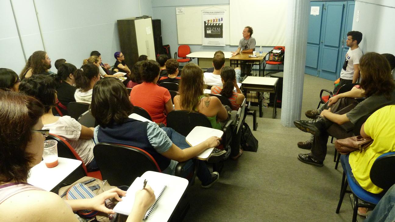 A Pelotas Film Commission – Central de Apoio a Produções Audiovisuais realizou palestra com o diretor de Arte, cenógrafo e artista visual Eduardo Antunes, ocorrida na segunda-feira(19), aos acadêmicos dos cursos de Cinema e Animação, Cinema de Animação e Cinema e Audiovisual da UFPel.