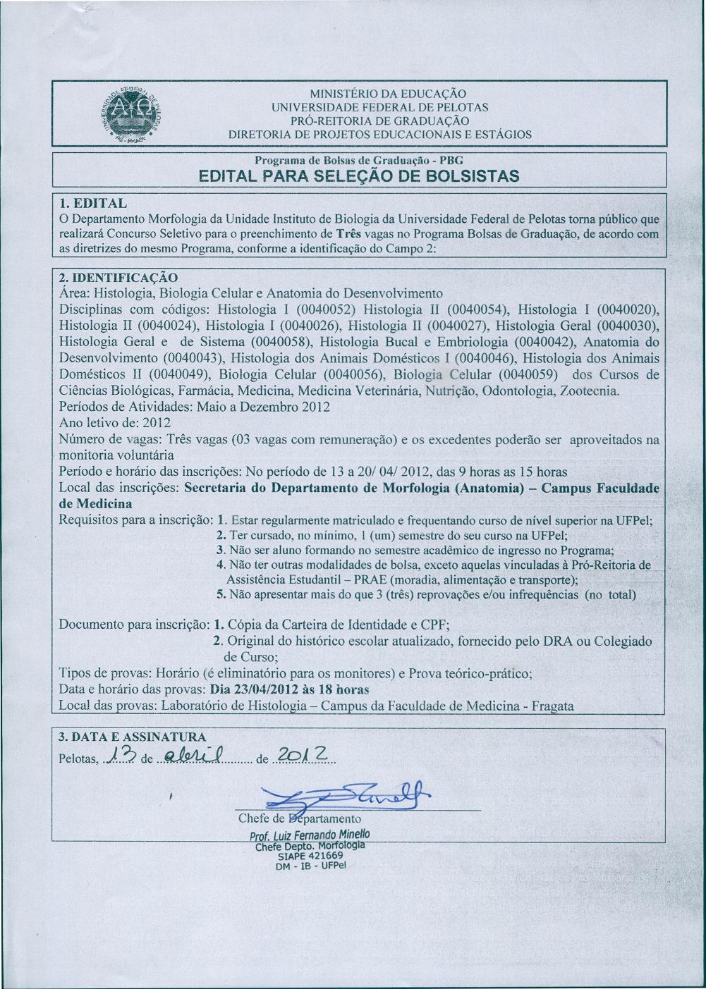 O Departamento de Morfologia do Instituto de Biologia está selecionando bolsistas de graduação. Clique na imagem para ler o edital.