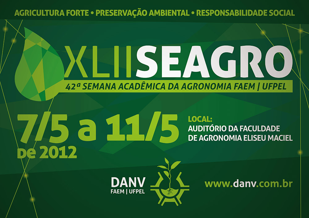 O Diretório Acadêmico Dr. Nunes Vieira do curso de Agronomia da UFPel convida toda a comunidade acadêmica, profissionais e comunidade em geral para a 42ª Semana Acadêmica da Agronomia, com o tema “Agricultura Forte, Preservação Ambiental e Responsabilidade Social”.
