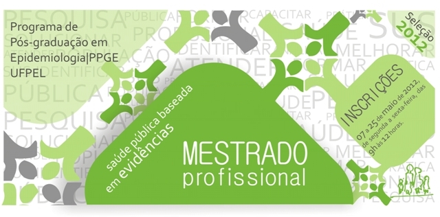 O Programa de Pós-Graduação em Epidemiologia da UFPel (PPGE/UFPel) realiza processo seletivo de candidatos ao curso de Mestrado Profissional em Saúde Pública Baseada em Evidências, financiado pelo Ministério da Saúde em cooperação técnica com a Universidade.