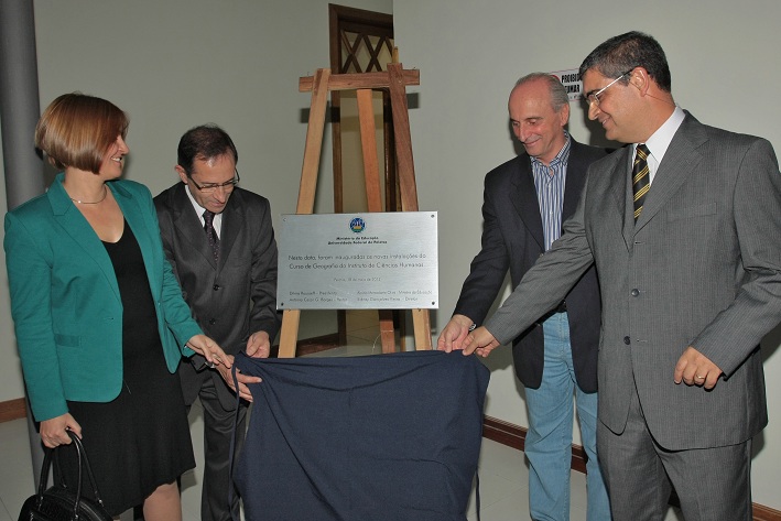 O reitor Cesar Borges, o vice-reitor Manoel Moraes, o diretor do ICH, Sidney Vieira, e a vice-diretora do Instituto, Lorena Gill, estiveram presentes aos atos de inauguração e descerraram placa comemorativa ao evento, ocorrido no começo da noite da sexta-feira(18) e prestigiado por grande número de servidores, docentes e acadêmicos da Universidade.
