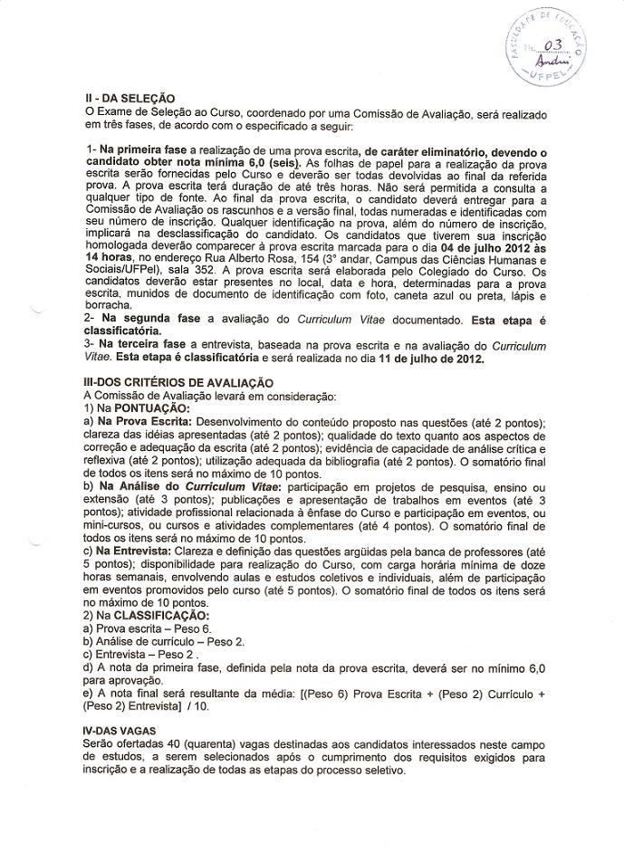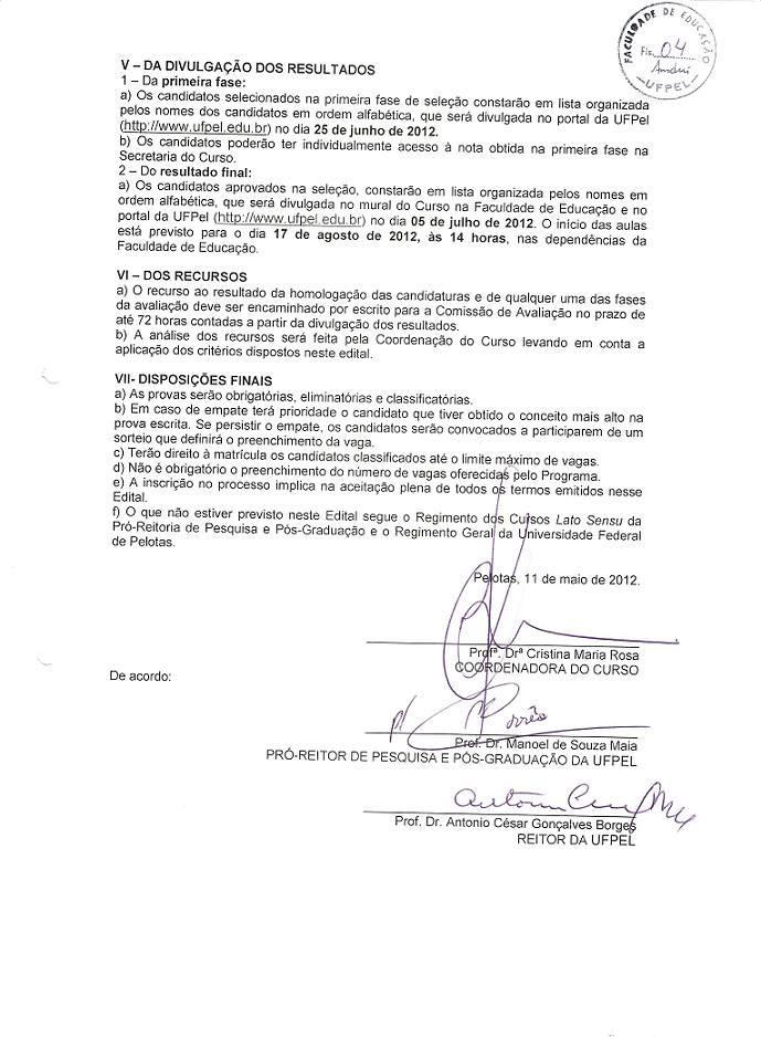 Informações: poderão ser obtidas pelo telefone 3284.-5539 e também pelo e-mail fae.pos@ufpel.tche.br.