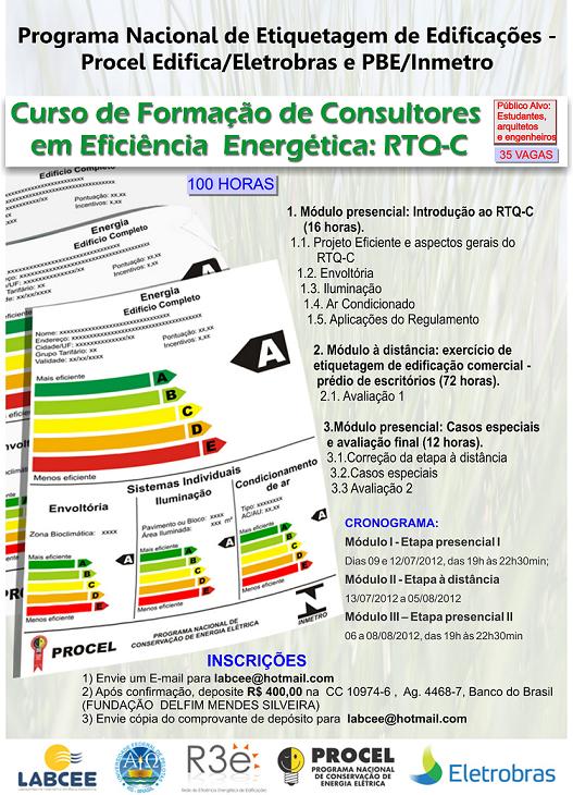 Dentro deste contexto o Laboratório de Conforto Ambiental e Eficiência Energética da Faculdade de Arquitetura e Urbanismo da Universidade Federal de Pelotas, fazendo parte dos 14 laboratórios de Conforto Ambiental da Rede R3E, sendo um dos quatro que recebem recursos da Eletrobrás para tornar-se Organismo de Inspeção, está promovendo um curso de formação de consultores em Etiquetagem de Eficiência Energética de Edificações Comerciais, Públicas e de Serviços. O curso possui três módulos caracterizados a seguir: