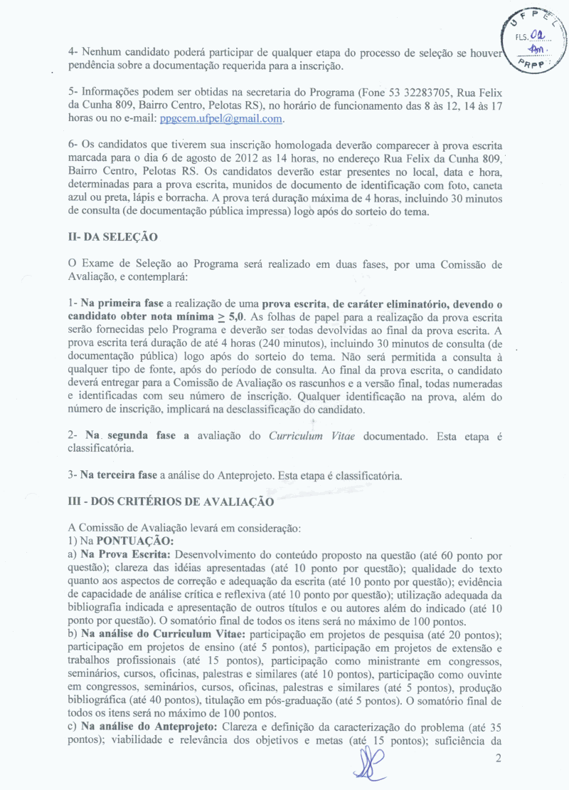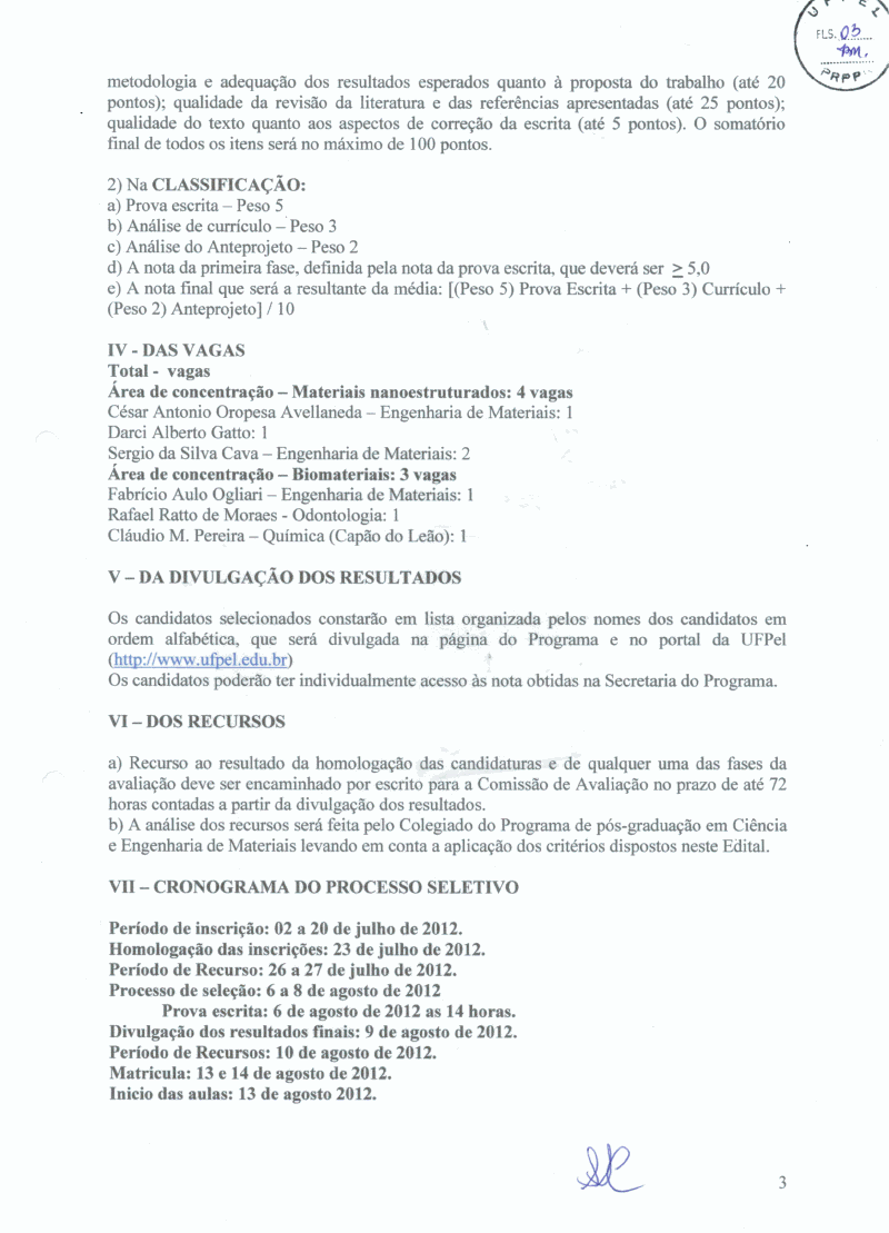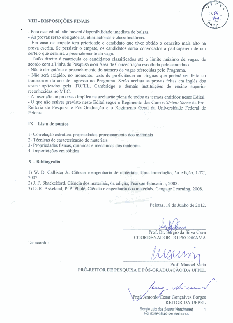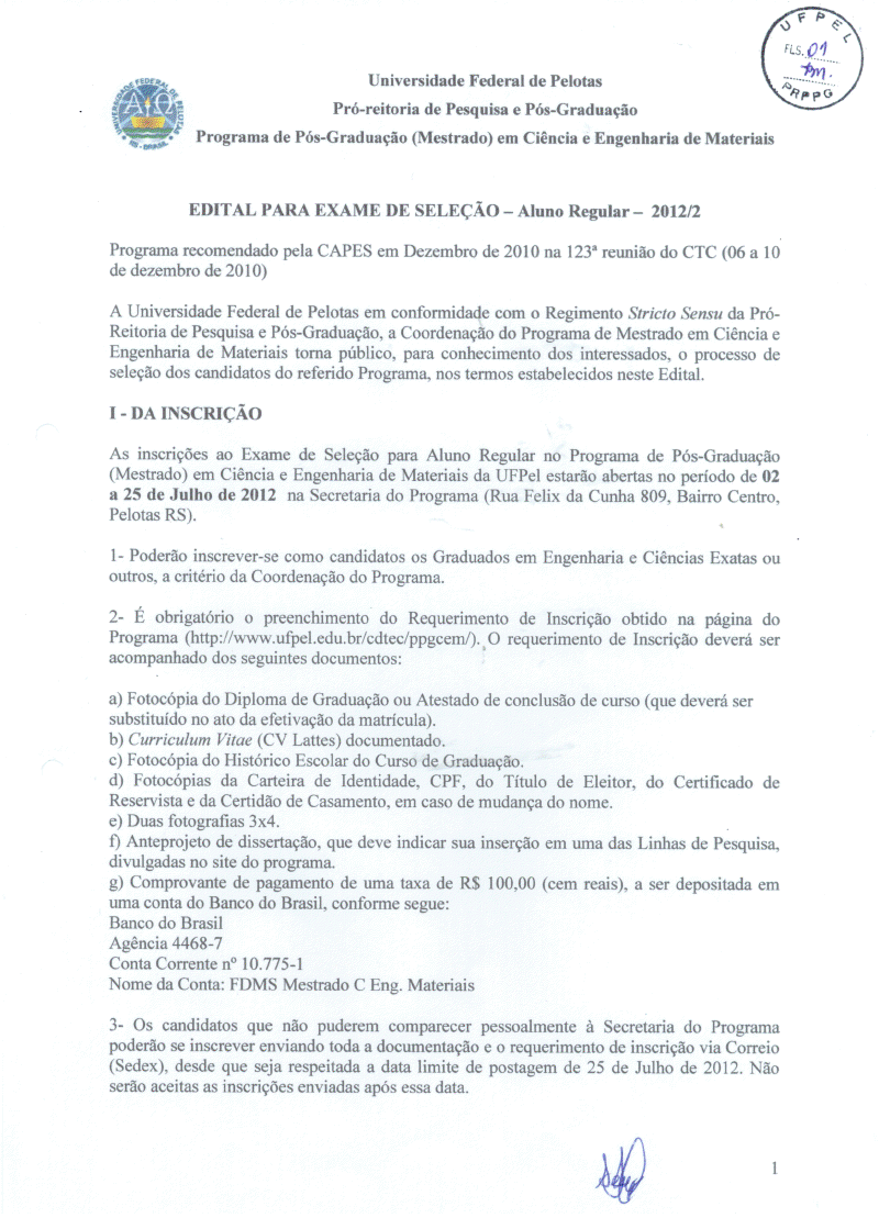 Mestrado do Programa de Pós-Graduação em Ciência e Engenharia de Materiais, para ingresso no segundo semestre de 2012. Mais informações no site http://www.ufpel.edu.br/cdtec/ppgcem