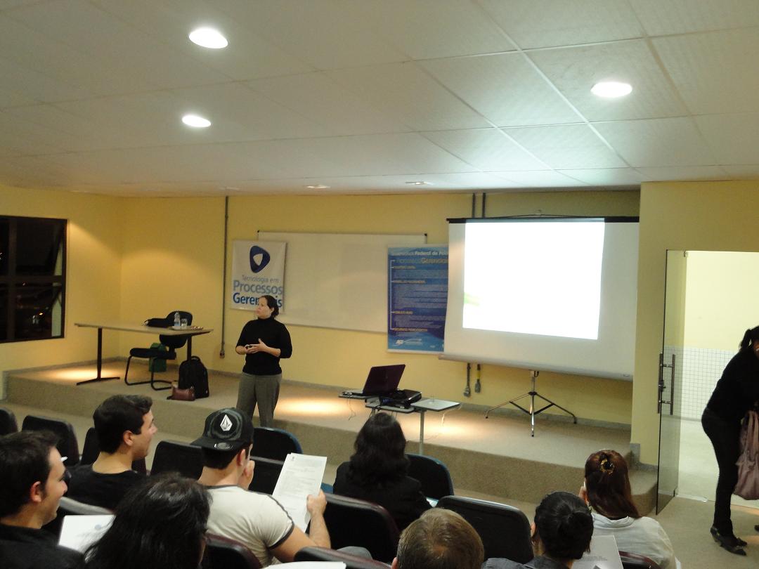 O Curso Superior de Tecnologia em Processos Gerenciais da UFPel promoveu, nesta quinta-feira (28), palestra intitulada “Gerenciamento da rotina através da definição de processos, padronização, operação, controle e ferramentas”, com a professora Aline Soares Pereira, mestre em Engenharia de produção, com ênfase em Qualidade e produtividade. A palestra ocorreu no auditório do 4ºndar Campus Porto.