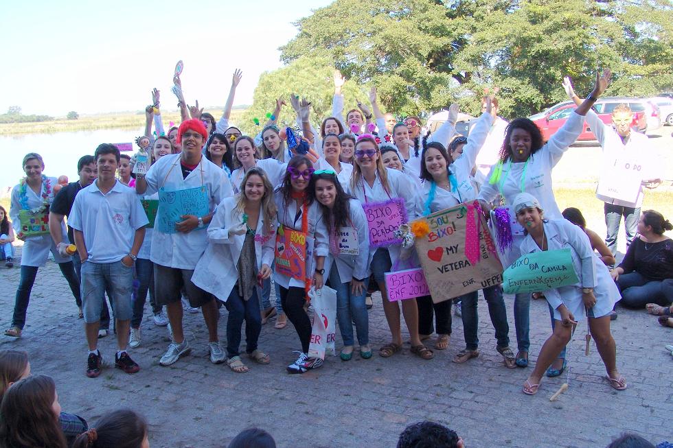O ingresso de cerca de 700 novos estudantes na UFPel no semestre letivo iniciado na segunda-feira(5) dá um novo colorido à cidade, com a recepção aos calouros, proporcionada pelos diversos cursos. Um dos exemplos é o curso de Enfermagem, que recepcionou calorosamente seus “bixos” na área externa do campus Porto, na terça-feira(6).