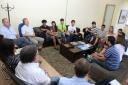 O reitor Mauro Del Pino, o vice-reitor Carlos Mauch, pró-reitores e assessores da Reitoria receberam na manhã desta quarta-feira(16) representação do DCE para esclarecer polêmica em torno do cerimonial da posse do Reitor, ocorrida na sexta(11), na Faem. A Reitoria reafirmou sua posição de manter diálogo respeitoso e fraterno com o DCE e de reconhecimento da entidade como legítima representante de seu segmento, esclarecendo o problema.