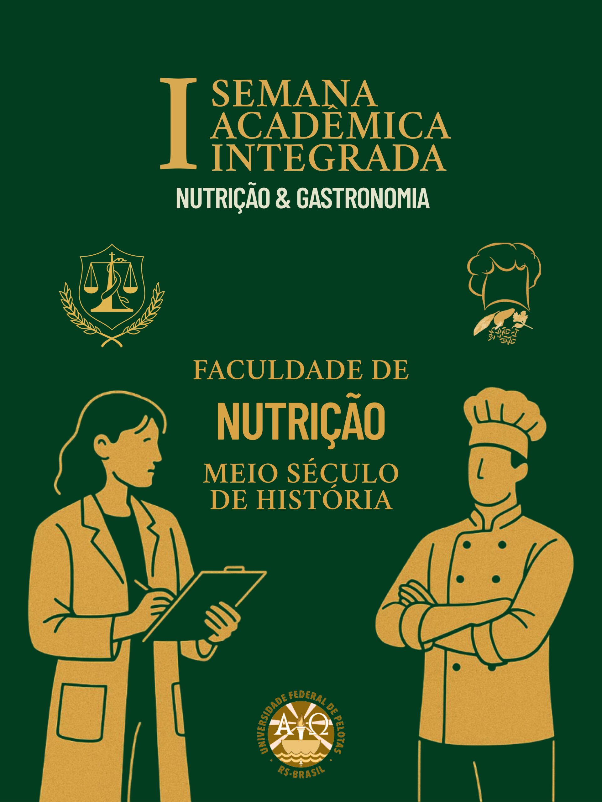 Como parte das comemorações dos 50 anos da Faculdade de Nutrição da Universidade Federal de Pelotas (UFPel), será realizada de 16 a 18 de setembro a 1ª Semana Acadêmica Integrada de Nutrição e Gastronomia. O evento, aberto à comunidade em geral, contará com palestras e minicursos teóricos e práticos.