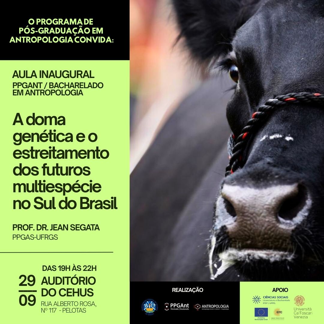 O Programa de Pós-Graduação em Antropologia (PPGAnt) da Universidade Federal de Pelotas (UFPel) realizará a sua aula inaugural, referente ao segundo semestre letivo de 2025, em 29 de setembro, das 19h às 22h, no auditório do Centro de Pós-Graduação e Pesquisas em Ciências Humanas, Sociais, Sociais Aplicadas, Artes e Linguagem (Cehus) da UFPel (rua Alberto Rosa, 117, no câmpus Porto). A atividade, com o tema “A doma genética e o estreitamento dos futuros multiespécie” será ministrada pelo professor da Universidade Federal do Rio Grande do […]