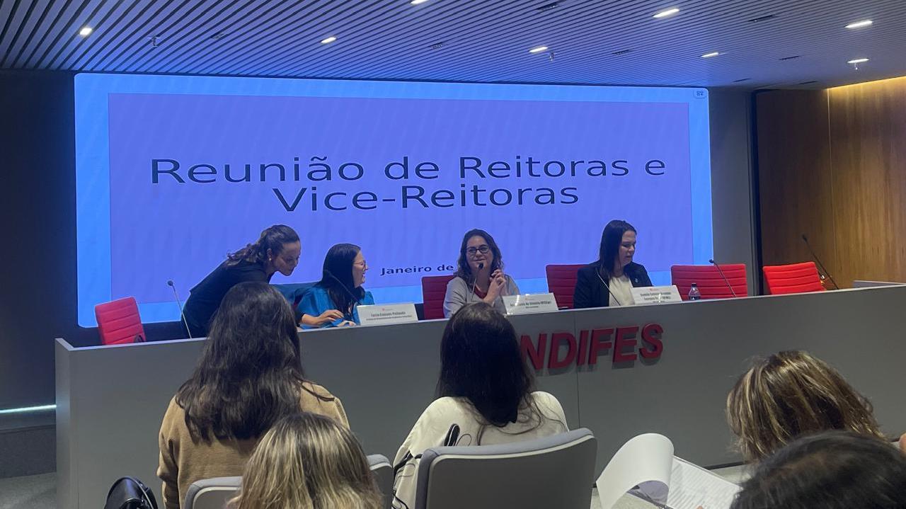 A reitora da UFPel, Ursula Silva, esteve presente no encontro de gestoras realizado no final de janeiro, que debateu a criação do “Protocolo de Intenções para Prevenção, Acolhimento e Enfrentamento da Violência contra as Mulheres nas Universidades Federais”. O documento é construído coletivamente entre a Andifes, o Ministério das Mulheres e o Ministério da Educação. Segundo a Andifes, a iniciativa representa um passo importante no fortalecimento de políticas institucionais voltadas à promoção de ambientes acadêmicos seguros, inclusivos e livres de violências de gênero.