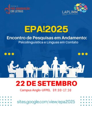 Quem tem interesse em Psicolinguística e Línguas em Contato tem a oportunidade de conhecer os trabalhos de mestrado e doutorado em desenvolvimento e/ou apresentar os seus resultados de suas pesquisas num evento especialmente dedicado à temática. Com o objetivo de compartilhar e construir conhecimento nessa área, a Universidade Federal de Pelotas (UFPel) sediará em 22 de setembro o Encontro de Pesquisas em Andamento (EPA!), no auditório da Reitoria (4º andar do câmpus Anglo). Os resumos das pesquisas (200 palavras) podem ser submetidos ao evento até […]
