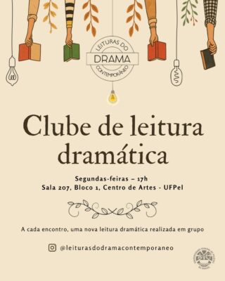 O projeto “Leituras do Drama Contemporâneo“, da Universidade Federal de Pelotas (UFPel), realizará a leitura dramática de “By Heart”, de Tiago Rodrigues. A atividade, que integra as comemorações dos dez anos da iniciativa, será desenvolvida no Bloco 1 do do Centro de Artes (rua Alberto Rosa, 62), na terça-feira (2), às 19h30 (Sala 02 – Multiuso). A obra teatral aborda o vínculo entre literatura e memória, especialmente quanto ao seu aspecto afetivo. O evento é aberto ao público em geral.